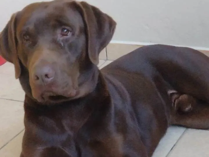 Adote Chocolate, um cão amoroso e brincalhão de 9 anos. Ideal para famílias com crianças. Dê a ele o carinho que merece. Venha conhecer e adotar!