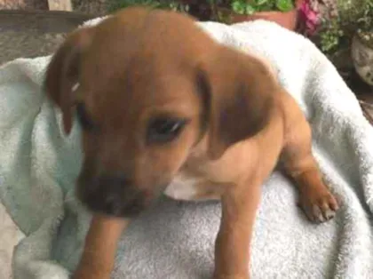 Adote a doce Dino, uma cadela SRD de 2 meses, marrom clara e cheia de amor. Faça parte da sua história e leve alegria para sua casa!