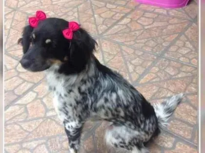 Espoleta, cachorrinha de 4 anos, carinhosa e brincalhona, procura um lar amoroso. Resgatada da rua, precisa de uma nova família que a cuide.