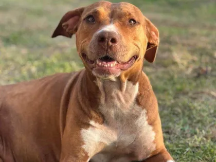 Adote uma pit-bull fêmea de 7 a 11 meses, vermifugada, dócil e sociável. Ideal para famílias com crianças e quintal. Fale com Luana e faça uma boa ação!