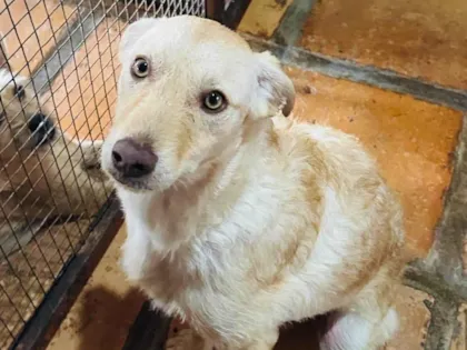 Feliz é um amor de cachorro, meio medroso, mas muitoooo carinhoso!! Se dá com todos os cães. Não chega a ser médio, menor do que aparenta. Está com quase 1 ano, castrado, vacinado, pesa 13kgs, não cresce mais…
