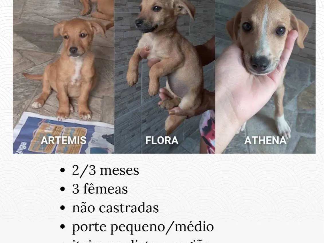 Adote Flora, Athena ou Artemis! Três cadelinhas SRD de 3 meses, dóceis e perfeitas para famílias com crianças ou idosos. São Paulo/SP.