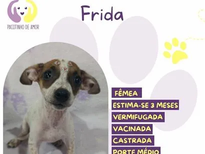 Conheça a Frida, uma cadela SRD dócil e brincalhona de 2 a 6 meses. Procura uma família amorosa em São Paulo. Adoção responsável com cuidados garantidos!