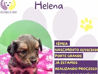 Conheça a Helena, uma cadela SRD dócil, sociável e super carinhosa! Com menos de 2 meses, ela está em busca de uma família amorosa em São Paulo. Adote!