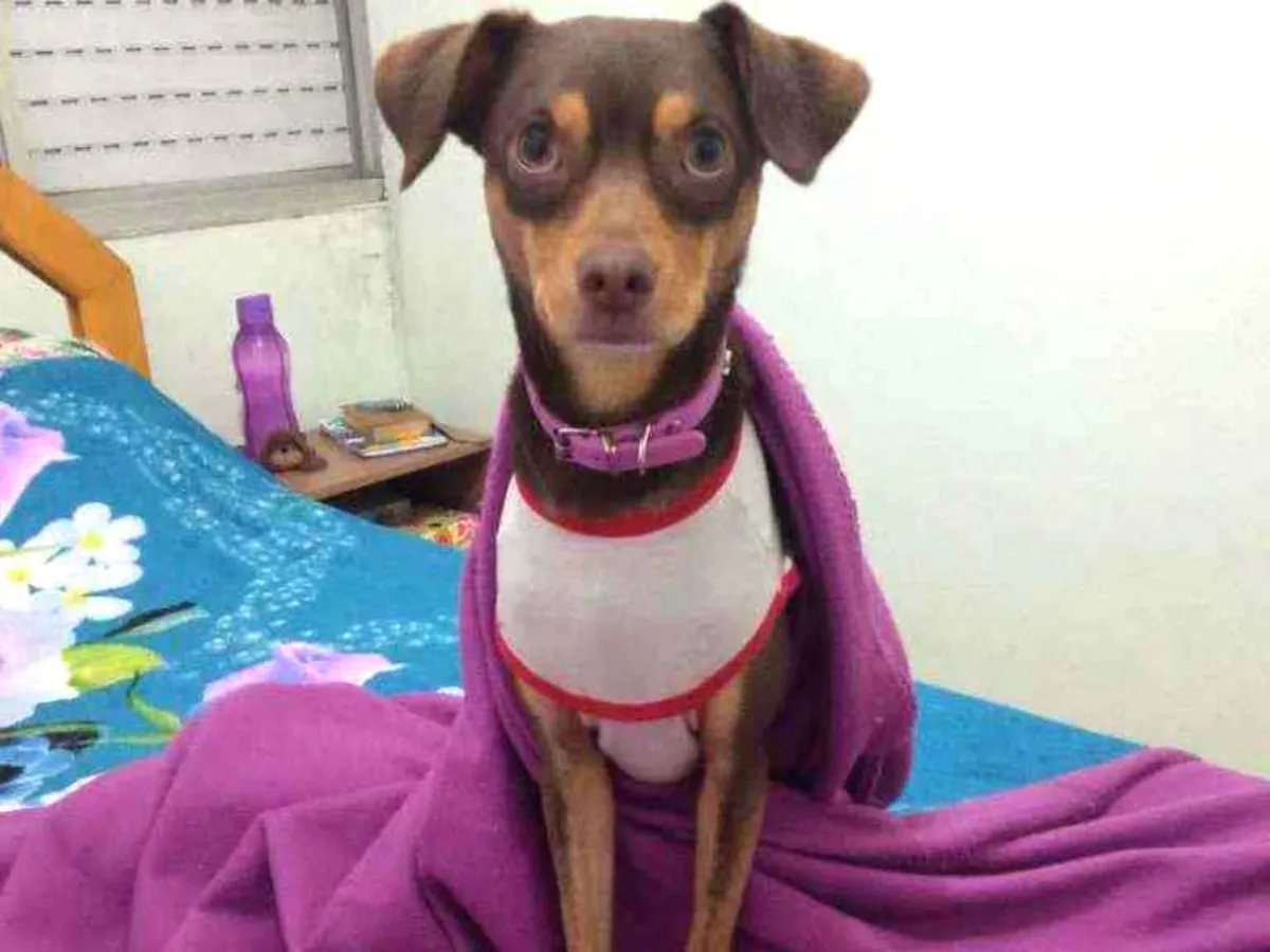 Procuro lar para Jade, cão agitado e carinhoso, ideal para casa com quintal. Ela é friorenta e precisa de amor e abrigo dentro de casa.