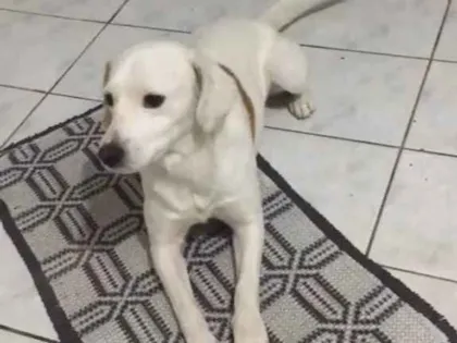 Cachorro protetor que não entra em casa, late para estranhos, faz necessidades no quintal e adora brincar com crianças e roupas.