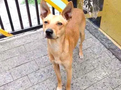 Adote o Kevin, um cachorro SRD caramelo, dócil e castrado, com 2 anos e 16kg. Adoção conjunta com Ariela na Zona Norte de São Paulo. Faça um amigo!