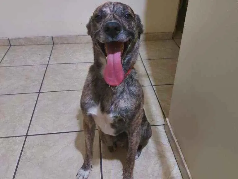 Kibe, cachorro SRD de 6 anos, castrado e saudável, busca novo lar. É fiel, companheiro e precisa de atenção. Tem dificuldade com crianças e socialização.