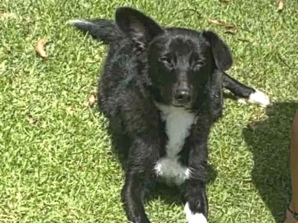 Lina é uma cachorra carinhosa de 4 anos, porte médio, castrada, com pelagem preta e branco. É alérgica e precisa de ração especial. Ideal para crianças e outros