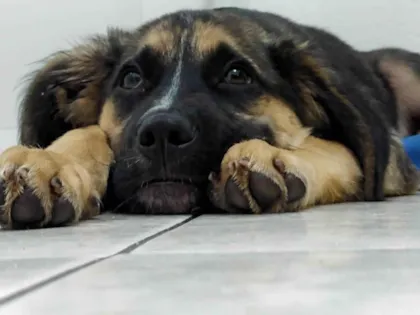 Adote Loki, lindo Pastor Alemão com Pitbull de 7 meses!