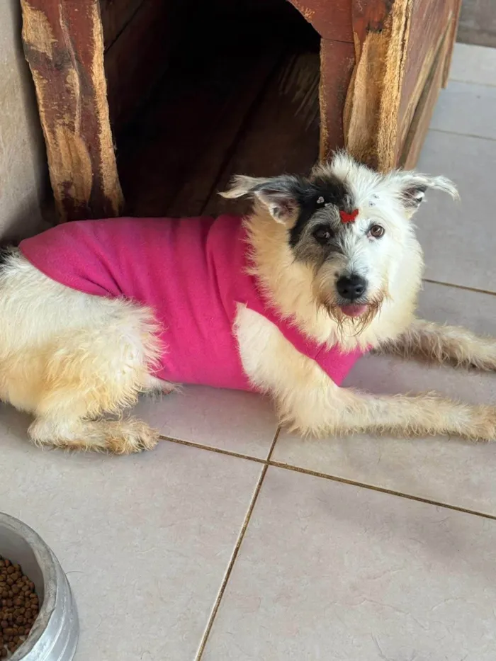 Ela tem cerca de 3 anos, tratou doença do carrapato, teve alta, castrou e vacinou. Ela é medrosa, mas é um amor de cachorra. Linda, meiga, boazinha. Se dá com outros cães. Média, cerca de 17kgs