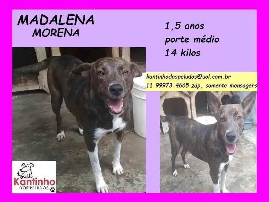 Adote a adorável Madalena, cadela SRD de 1 ano, castrada e vacinada. Conheça outros pets disponíveis e nosso trabalho em nossas redes sociais!