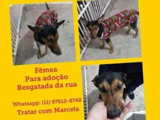 Cachorrinha dócil, resgatei na rua pois estava sendo chutada por homens , ela está castrada, vacinada e vermifugada. Só faz xixi coco na rua e é muito amorosa