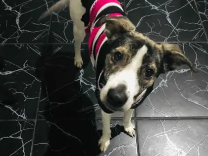 Alegre cadela Malu em busca de um lar em São Paulo