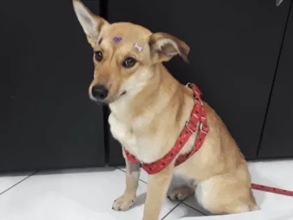 Cachorra atropelada resgatada, está sendo cuidada e trata no veterinário. É dócil, tranquila, castrada e vacinada. Procura um lar seguro.