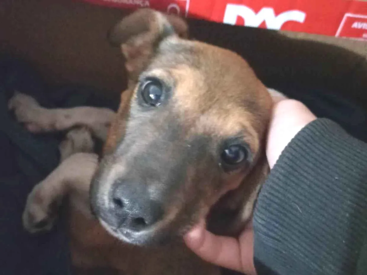 Adoção urgente de cadela fêmea, 5 meses, carinhosa e tímida. Abandonada, precisa de um lar. Entrego em estações de metrô e trem. Aja rápido!