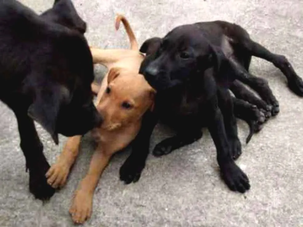 Adote um cachorro ou cadela! Duas fêmeas pretas e um macho amarelo, entre 2 a 6 meses, estão à espera de um lar em São Paulo/SP.