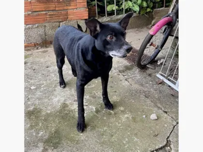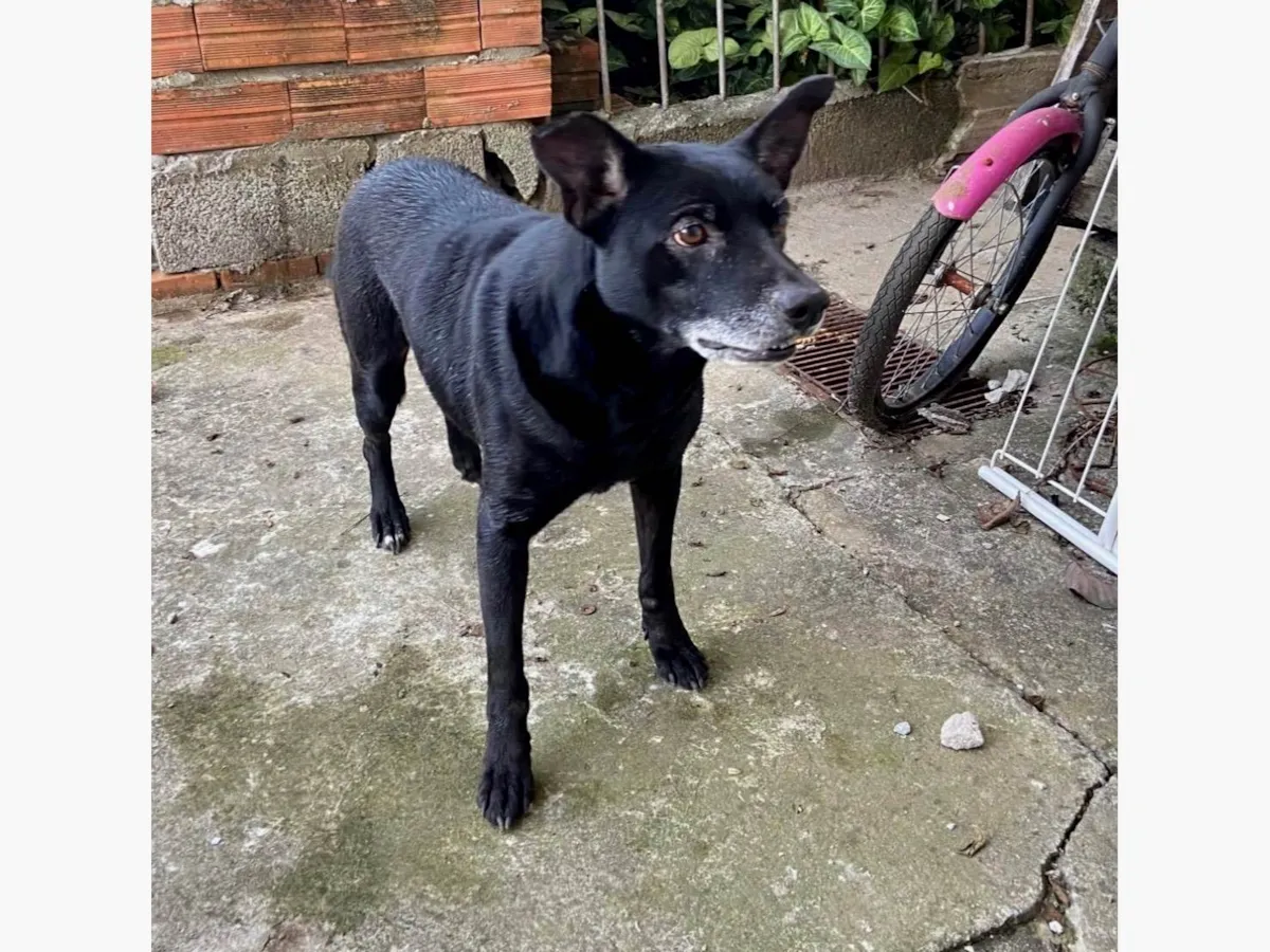 Adote Negão, um lindo cãozinho preto de 4 anos. Ele é dócil, brincalhão e busca um lar com amor, espaço e carinho. Dê uma chance a ele!