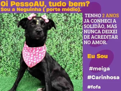 Adote Neguinha, uma adorável cadela SRD de 2 anos, castrada, vacinada e vermifugada. Ela está pronta para te dar muito amor em São Paulo!