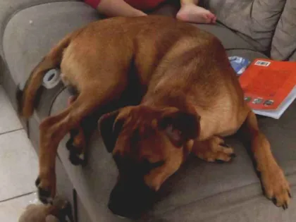 Paçoca foi resgatado com 5 meses. Vacinado e vermífugado. Atualmente mora em apartamento, porém não esta se adequando pois ele não tem o espaço que