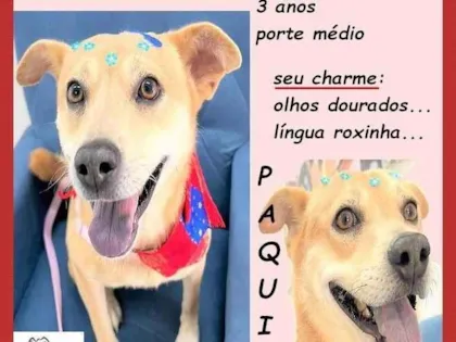 Adote a Paquita, cadela SRD dócil e carinhosa em SP!