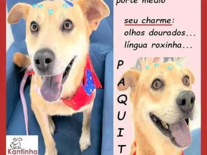 Adote a encantadora Paquita, uma cadela SRD de 3 anos. Ela é castrada, vacinada e cheia de amor para dar. Vários doguinhos aguardam por você!