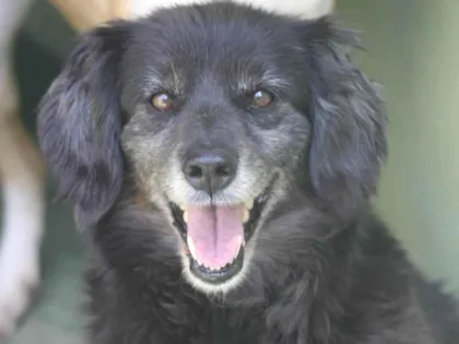 Conheça Pretinha, uma cadela linda e amorosa de 9 anos, sociável com outros cães. Adote essa companheira alegre e faça a diferença na vida dela!