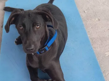 Adote o adorável Pretinho! SRD de 11 meses, 8kg, dócil e com pelagem preta. Castrado e vacinado, ele está pronto para te conquistar com seu carinho.