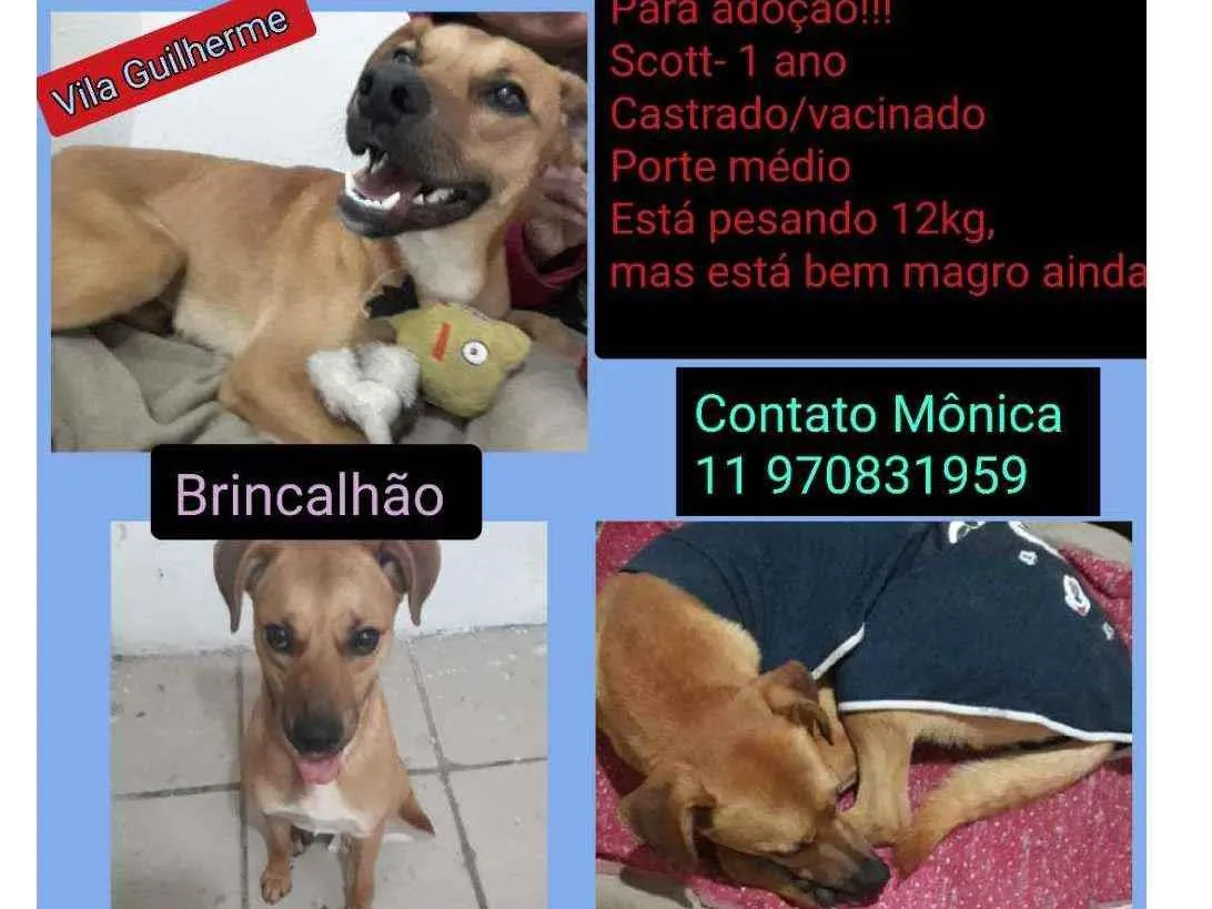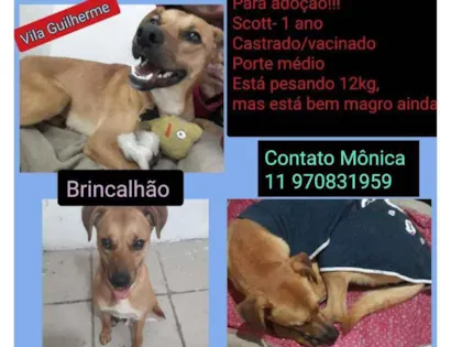 Scott é um adorável cachorro de porte médio, pesa 15 kg, é dócil, brincalhão, convive bem com outros animais. Disponível para adoção.