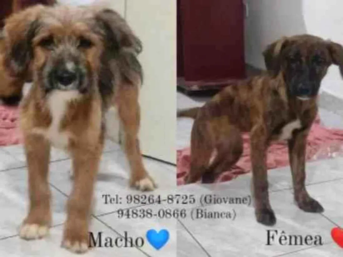 Adote um amigo fiel: 2 filhotes adoráveis, um macho e uma fêmea, sem raça definida, de 7 a 11 meses esperançosos por um lar amoroso.