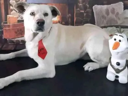 Cachorro claro de 4 anos, super ativo e brincalhão. Precisa de cuidados, banho regular, vacinas e espaço amplo como quintal ou chácara.