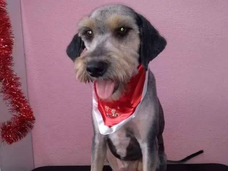 Teddy, um mix de Schnauzer com Poodle, 5 anos, 17 kg, é alegre, brincalhão e sociável. Castrado, vacinado e vermifugado. Adote em SP ou ABC.