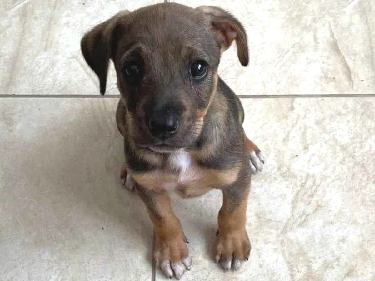Adote o Tob, um adorável filhote SRD de 2 meses, resgatado de uma rua em São Paulo. Dê a ele um lar cheio de amor e carinho!