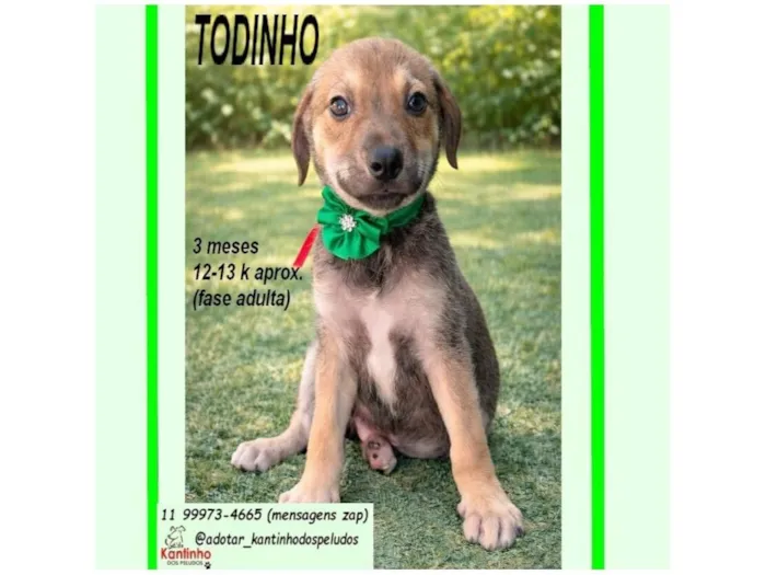Adote Todinho, um adorável cãozinho SRD de 2 a 6 meses, dócil e sociável. Perfeito para sua casa ou apartamento em São Paulo! Conheça o amor canino!