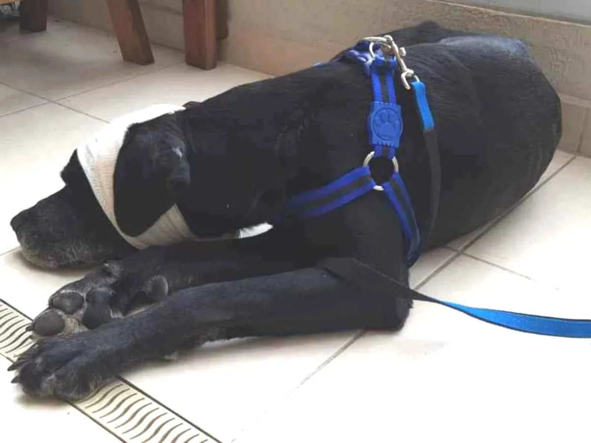 Atualmente está sendo tratado em um lar provisório, pois foi encontrado acidentado com um trauma. De acordo com o veterinário pode ter sido um atropelamento ou pancada.