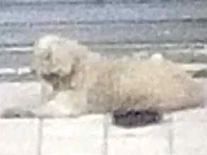 Cão está com pelagem suja e emaranhada, aparenta ser criado dentro de casa ou quintal, pois se mostra bem confuso na rua.