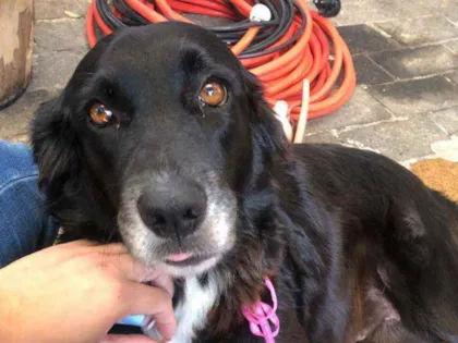 Apareceu aqui na praça Santo Arsênio - Vila Formosa, muito dócil, tinha os pontos da castração, foram retirados, está bem, é preta com o peito de branco, lembra a
