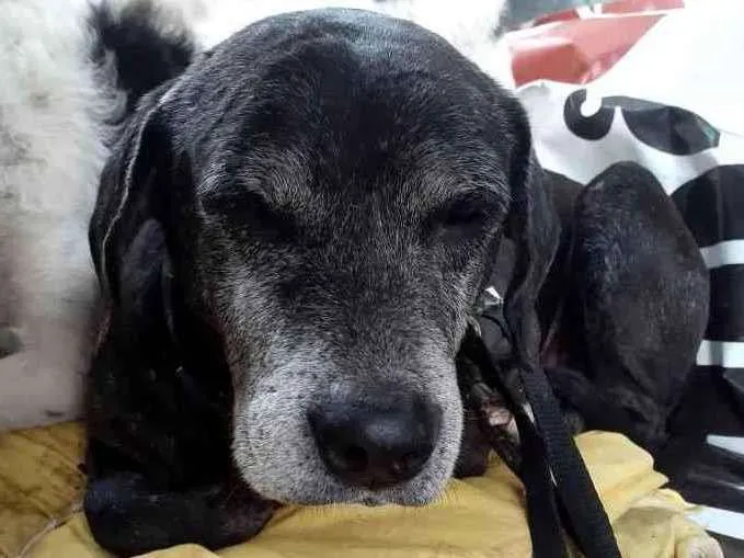 Cachorro idoso e dócil encontrado com carroceiro. Unhas cortadas, parece ter dono. Estou divulgando e acompanhando. Ajude a encontrá-lo.