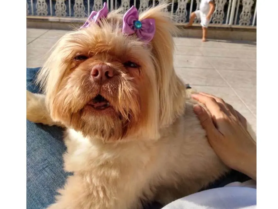 Cachorro shih-tzu branco fugiu em 02 de setembro de 2019. Possui dois laços lilás e responde pelo nome Baby. Desapareceu na Zona Leste, Villa Verde.