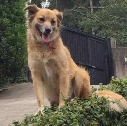 Ajude a encontrar Doris, cadela amarela e branca que fugiu no dia 26/12. Ela tem mancha azul no olho direito e usava coleira vermelha. Recompensa disponível.