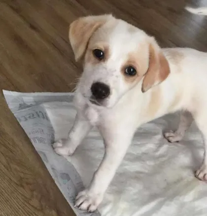 Vira-lata pequena, branca com manchas mel, muito brincalhona, perdida em Santo André. Viagem recompensada. Informações podem salvar uma vida!