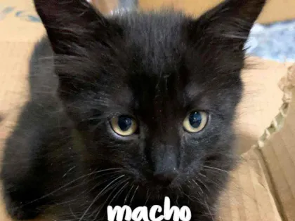 Adote Batman, o gatinho macho pretinho e peludinho de 2 meses. Procura um lar seguro, sem rotas de fuga. Entre em contato para adoção responsável.
