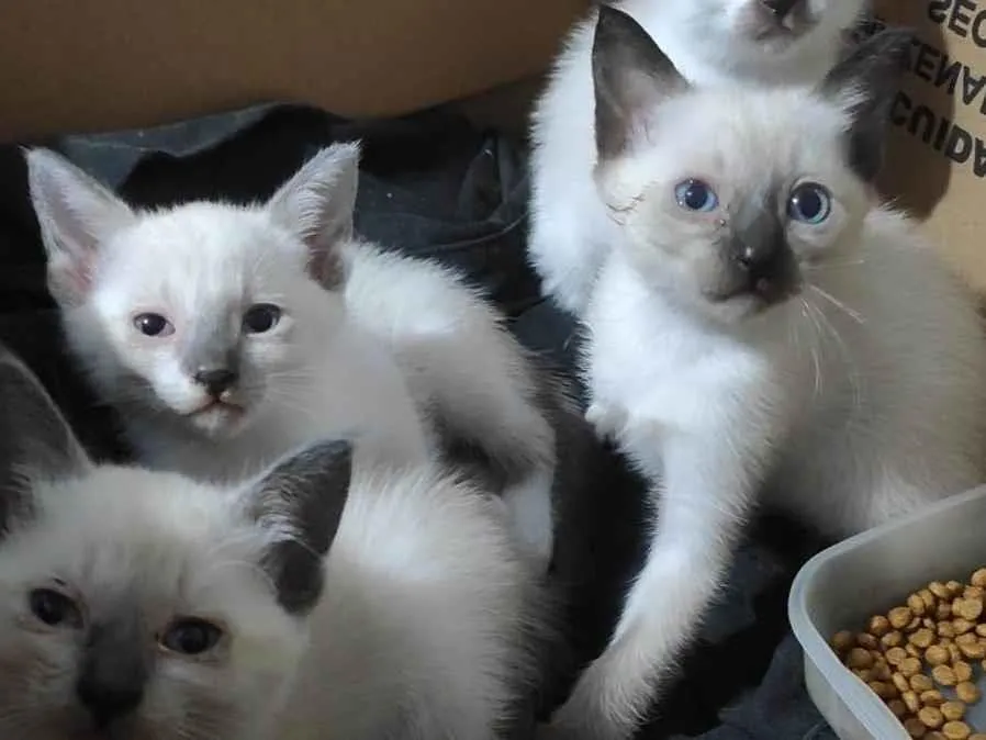 Doe um dos 4 gatinhos brincalhões e fofinhos, tipo siamês, que precisam de um lar amoroso. Entre em contato para garantir a adoção. Vamos ajudar!