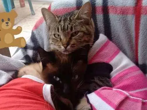 Somos um casal que se apaixonou á primeira vista , eu sou a Mariah e meu marido o Alemão me escolheu para namorar logo quando cheguei ao gatil, como eu ainda não estava castrada e ele apareceu no gatil sem castrar acabei ficando gravida e tive 5 bebes, todos foram adotados , agora nós dois buscamos uma familia que nos ame , e cuide de nós dois.Somos castrados e vermifugados, tenho pelo branquinho e cinza ,olhos verdes , sou bem pequenina e meu esposo ele e´um siamês forte e lindo de olhos da cor do céu, somos muito carinhosos, mas queremos alguem que nçao tenha outros animais , tenho cerca de 4 anos e meu esposo tambem.