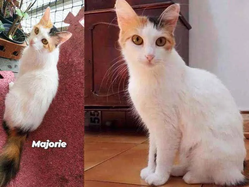 Adote Marjorie, uma gatinha fofa de 1 ano, castrada e vacinada. Dê a ela a casa dos sonhos! Adoção responsável, sem fuga possível.