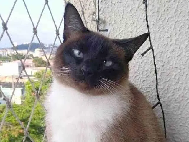Mia, gatinha Siamesa de 1 ano e meio, castrada e vermifugada, procura adoção. Carinhosa e companheira, busca lar seguro com muros altos.