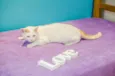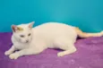 Miu sou o Mingau, minha pelagem é branca e tenho o rabinho e uma machinha na cabeça amarela. Tenho 1 aninho de idade estou castrado, vacinado, vermifugado, passei anti-pulga e sou negativo para FIV (aids felina) e FELV (leucemia felina), quer dizer que eu não tenho essas doenças. Sou muito carinhoso, ronronento, amo brincar de bolinha, carrego na boca rsrs e adoro ficar junto e receber carinho. Convivo super bem com outros gatos . Só faço as necessidades na caixa de areia e como ração seca e sache.