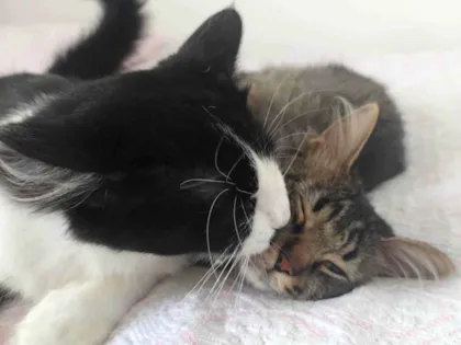 Resgatamos os gatinhos. Apelidamos eles de Nick e Tom. Gostaria de alguém que pudesse adotar e cuidar deles! Meu filho autista não se adaptou.