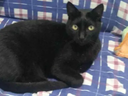 Conheça Pantera, um adorável gatinho preto de 3 anos, castrado e saudável. Ideal para quem busca um companheiro carinhoso e dócil em casa ou apartamento.
