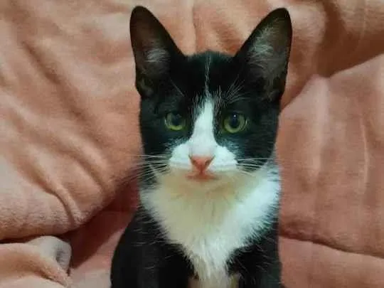 Olá, esse gatinho encontrado pelo meu cachorro no meio do mato, é macho, deve ter um pouco mais de 30 dias ainda, tem a pelagem preta com manchas brancas, está comendo ração seca. Se tiver interesse ou souber de alguém que tenha, entrar em contato no n° (11) 99539-4963 (WhatsApp). Zona Sul/SP (18/06/2022).